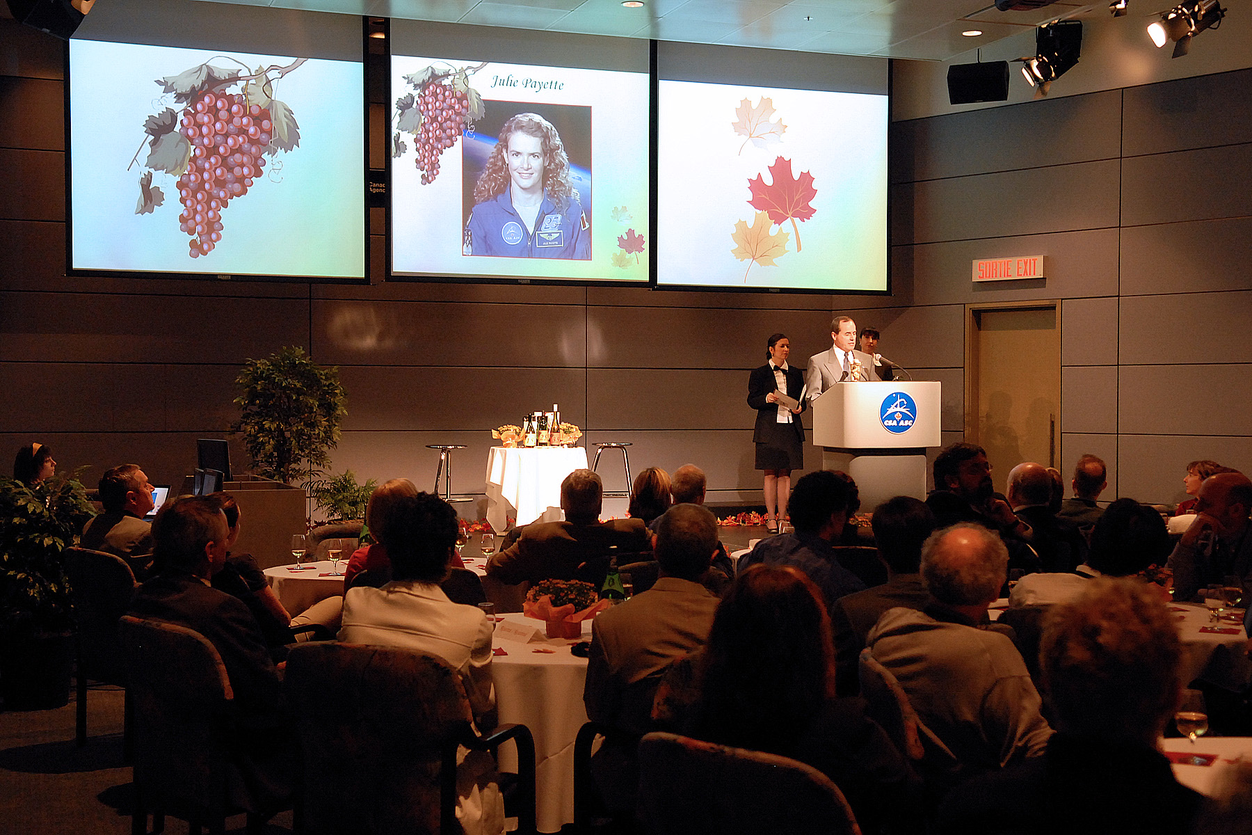 L’Agence spatiale canadienne nous a mandatés pour revamper la célébration des années de service des employés. « Du Beaujolais nouveaux aux grands crus », c’est le thème choisi pour la cérémonie « nouveau genre » que nous créée et animée pour la centaine d’employés présents, dont l’astronaute Julie Payette.